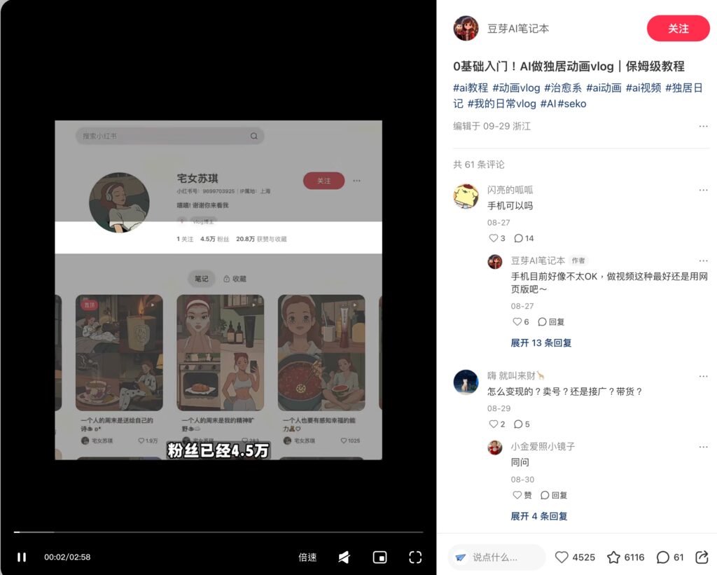 最近滑小紅書時,你是不是也發現一種「AI 動畫風 Vlog」突然爆紅?畫面裡是一位療癒的虛擬女孩,記錄下班後的獨居生活、週末治癒時光,不但氛圍感十足,留言區更是一片「好可愛」、「好想學怎麼做!」。