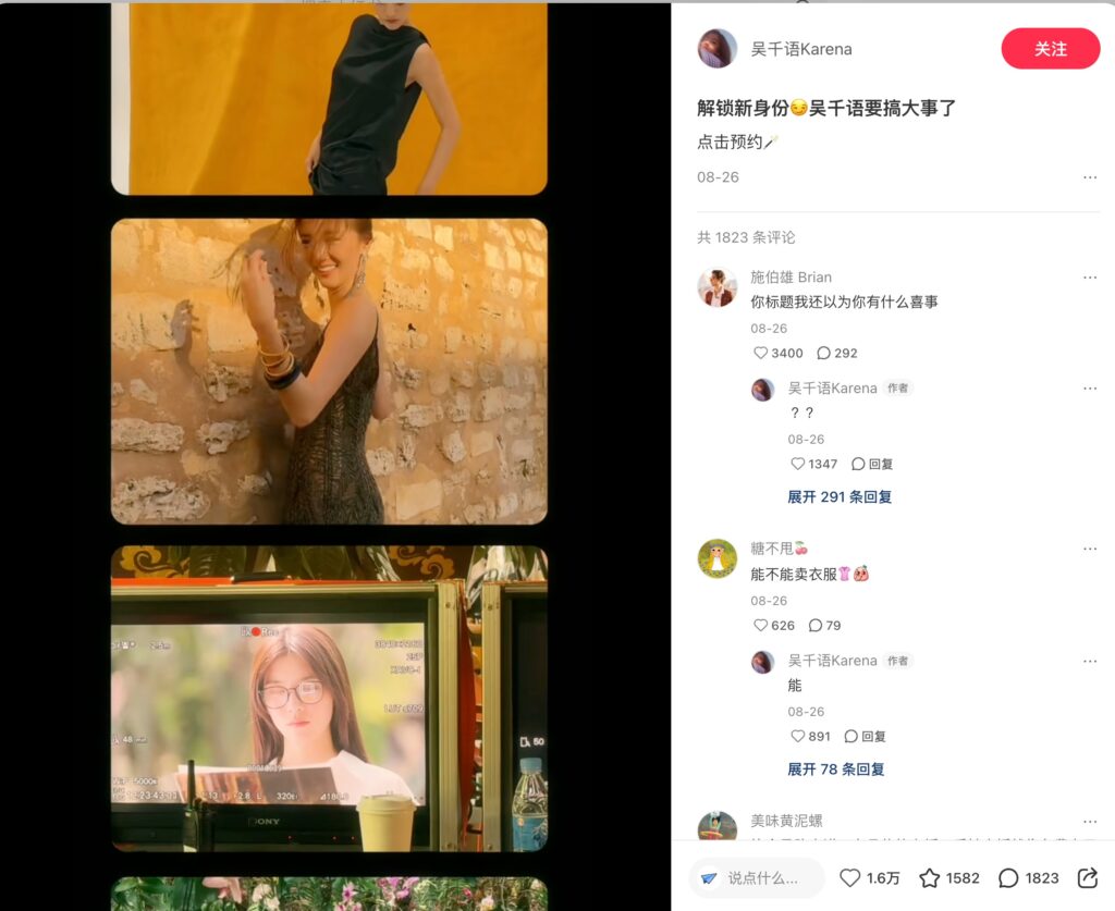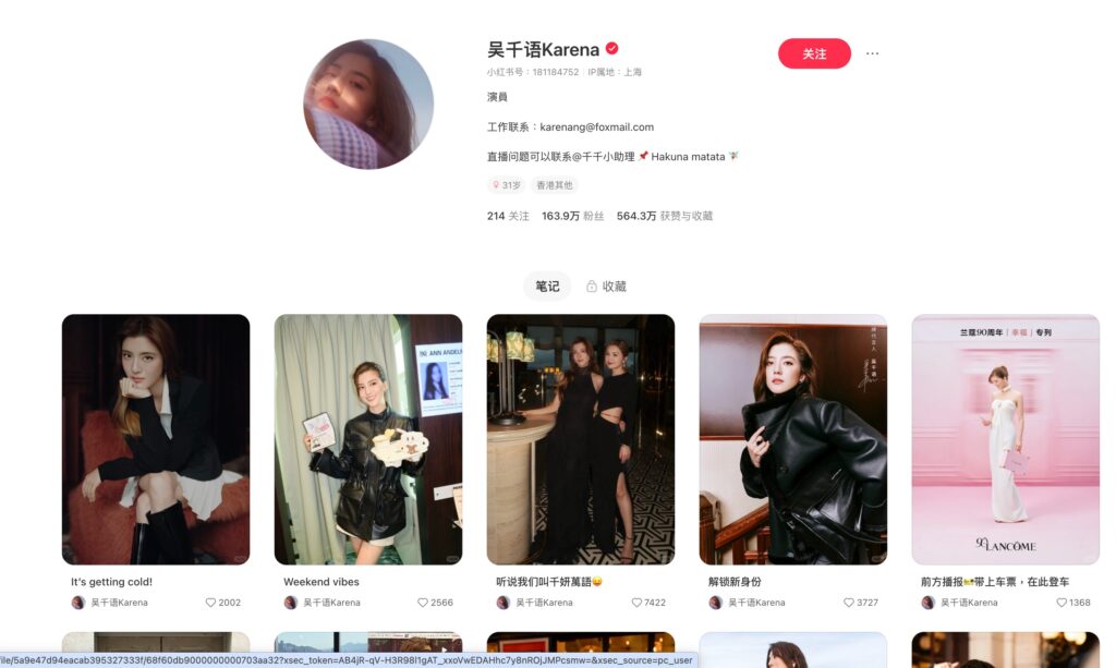 吳千語出身香港影壇,17 歲即被知名導演簽約拍廣告,曾主演多部影視作品並獲獎肯定。她在小紅書的帶貨定位屬於「明星買手」,但更重要的是她的人設打造——經濟自主、清醒獨立。