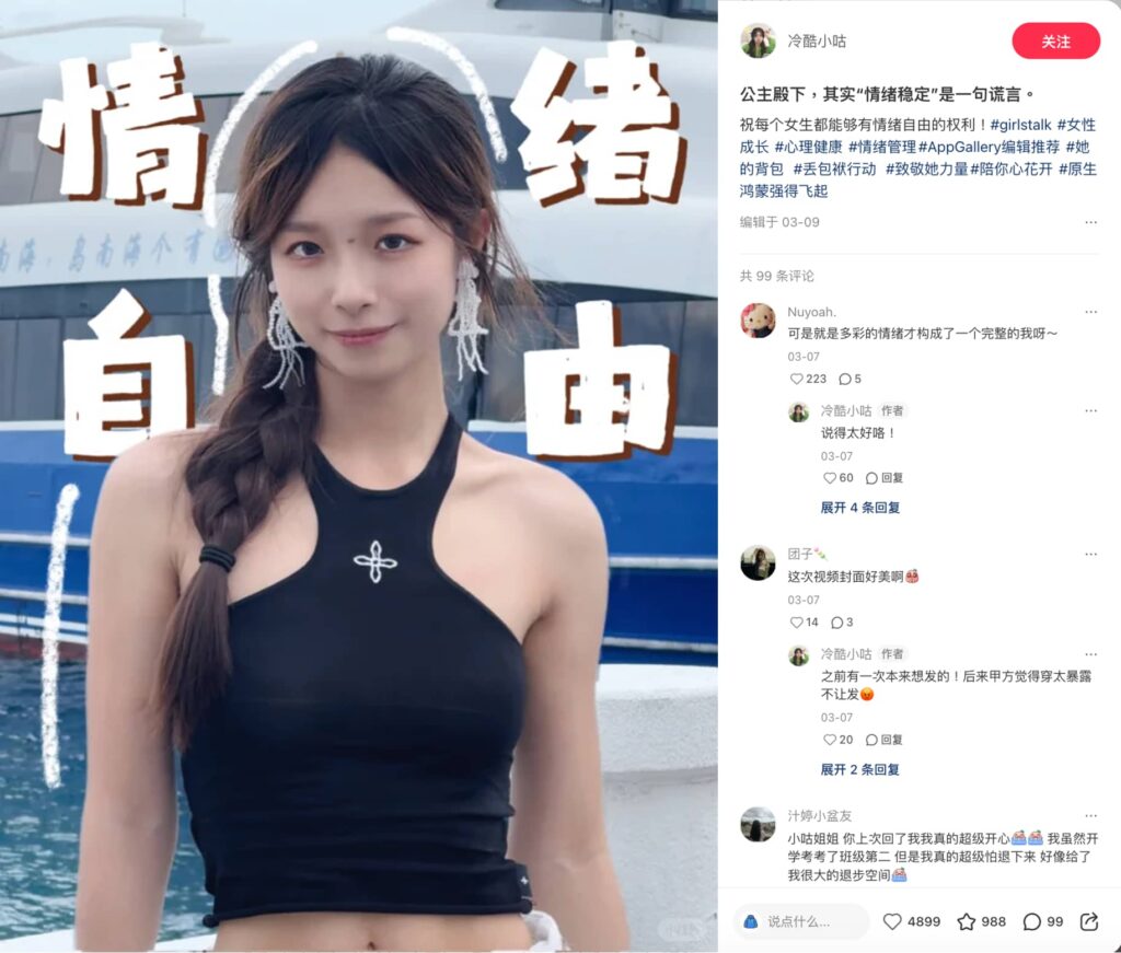 比起 #情緒穩定。小紅書用戶更重視的是 #情緒自由