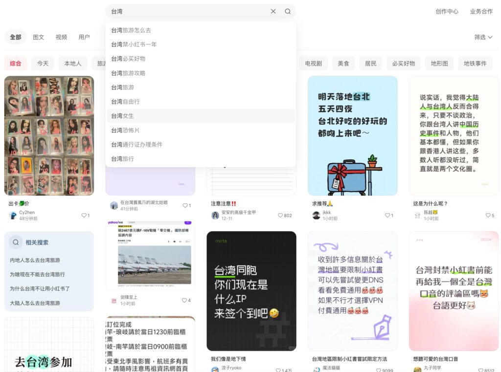 除了用戶量逆勢成長,最近的新聞事件也讓「台灣」成了小紅書的流量密碼。全球搜尋量大幅提升,討論熱度飆升,不少海外用戶也開始關注台灣的品牌與生活方式。