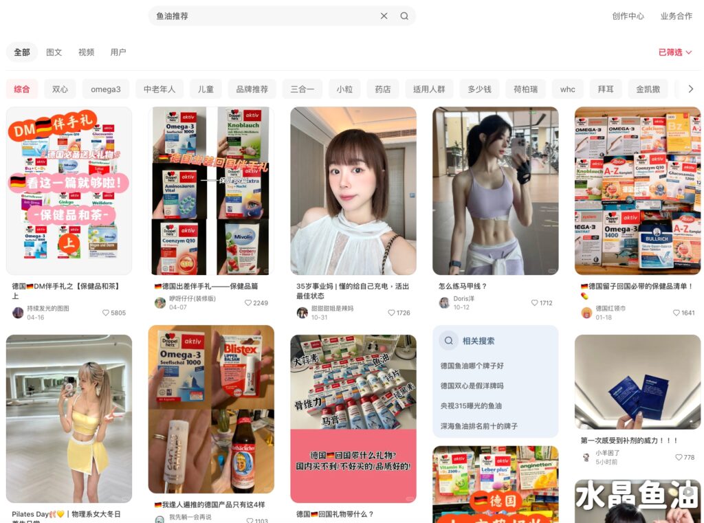 保健品幾乎是小紅書搜尋量最高的類型之一。